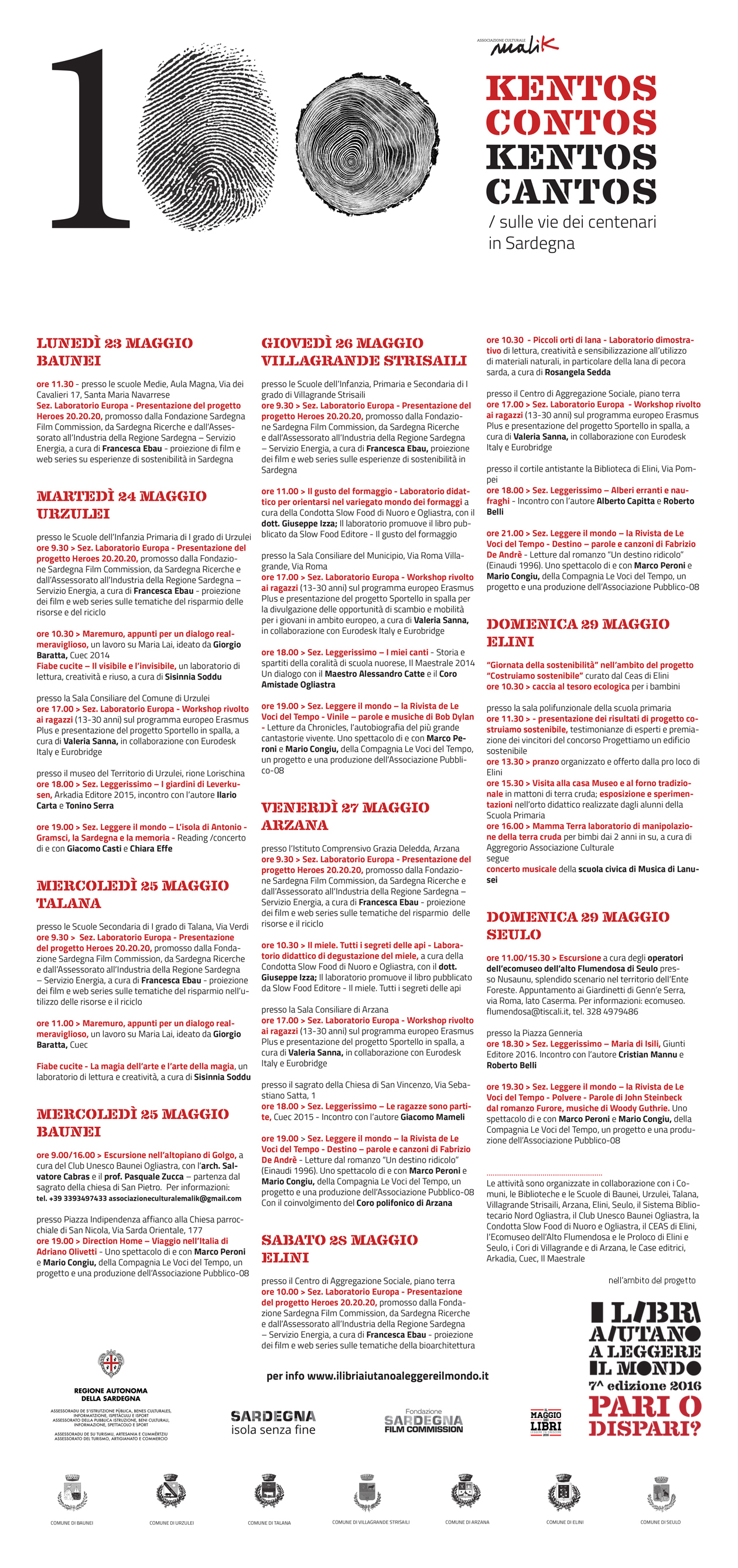 Programma: KENTOS CONTOS KENTOS CANTOS/sulle vie dei centenari in Sardegna