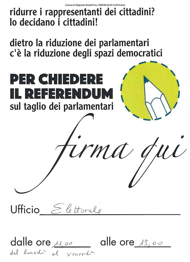 RACCOLTA FIRME REFERENDUM SUL TAGLIO DEI PARLAMENTARI